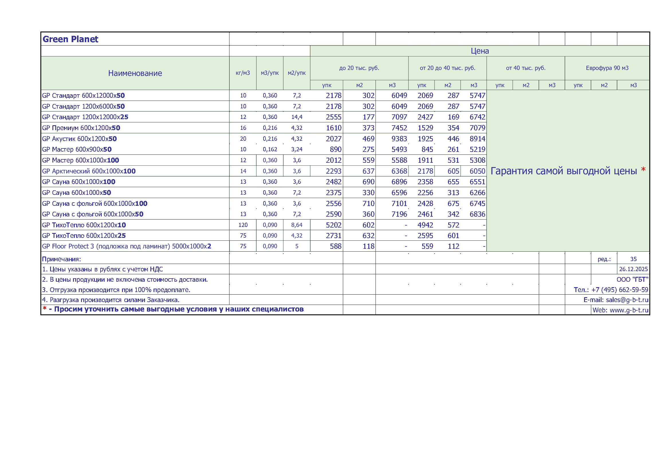 Напоминаем, что у нас действует ГАРАНТИЯ ЛУЧШЕЙ ЦЕНЫ. Это означает, что Вы можете купить утеплитель Greenplanet® Стандарт 25 по лучшей цене в Москве!